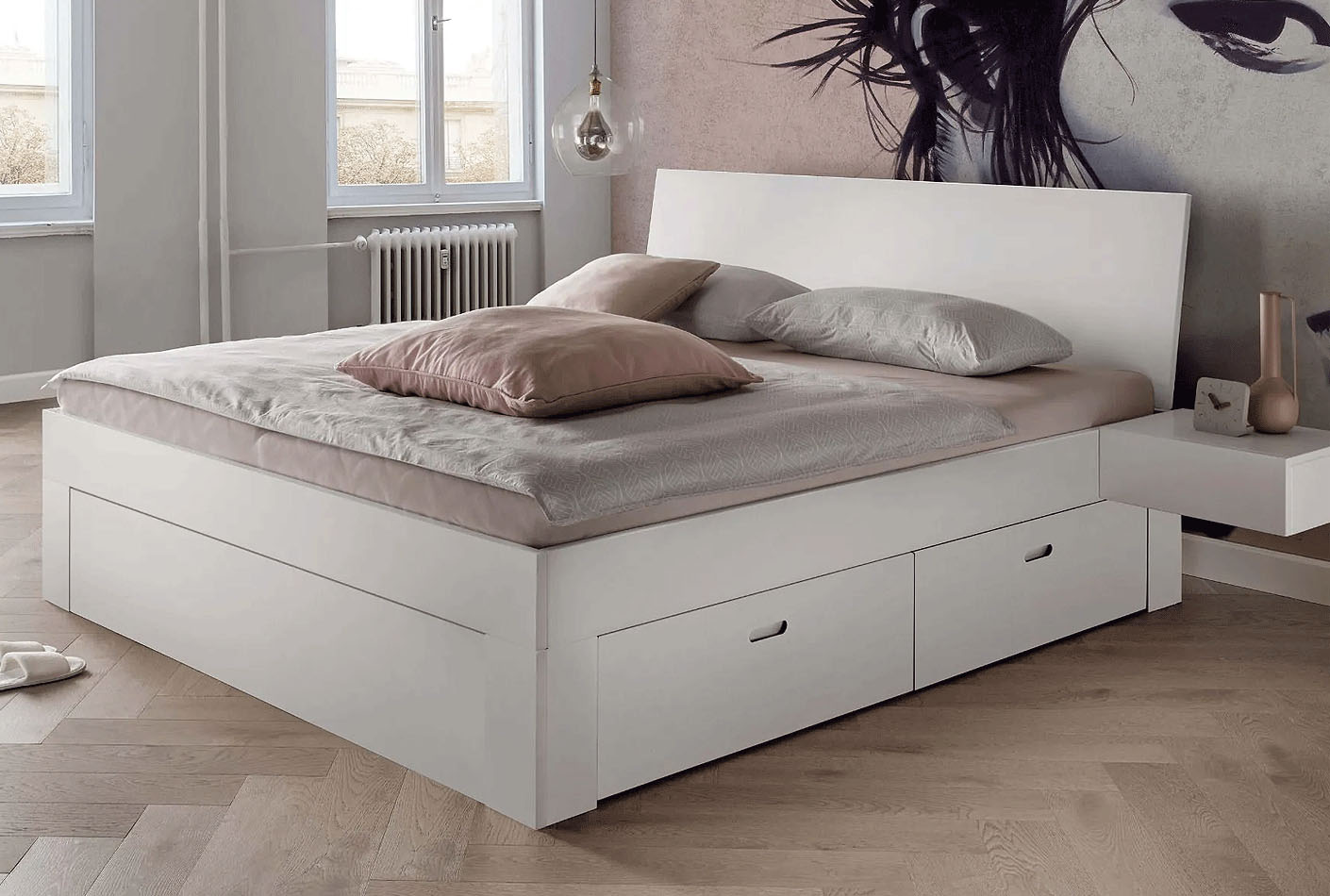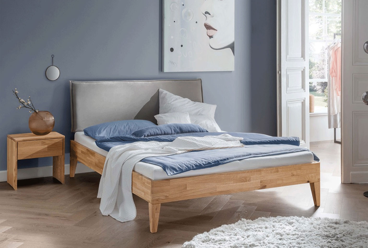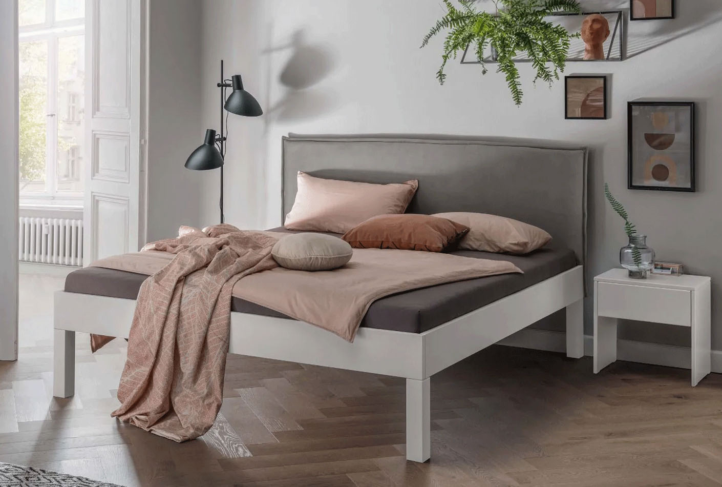 - Cena velja za ležišče 140x200cm: posteljni okvir brez vzglavja LA-1120-WE, oblazinjeno vzglavje 2 LA-6120, noge TP LA-7007-WE (4kos).