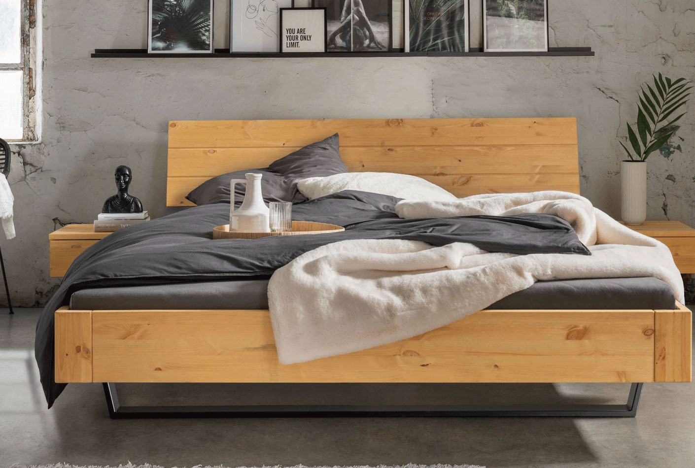 Cena velja za dimenzijo 140×200 cm, natur bor, črno kovinsko podnožje.