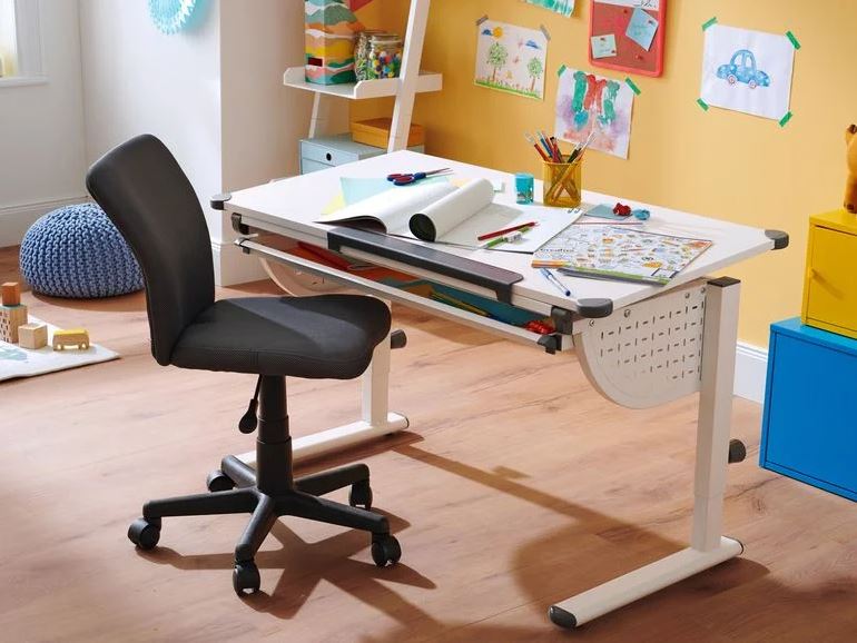 - Preprost otroški pisarniški stol, z ergonomsko oblikovanim naslonom.