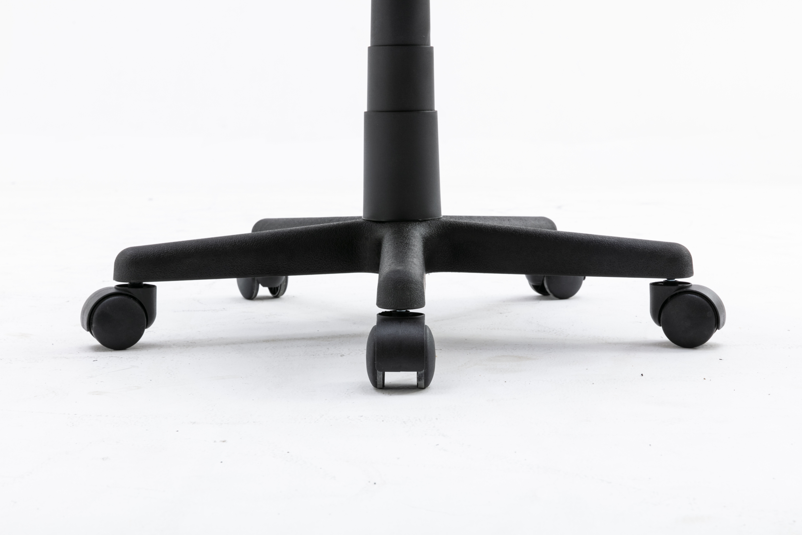 - Podnožje stola je plastično in ima 5 gladko vrtečih plastičnih kolesc.