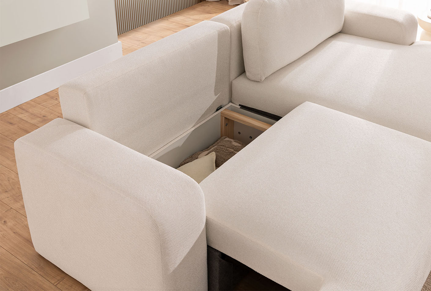 - Hrbtišče: naslonske blazine s snemljivo prevleko; polnilo: silikonske granule za maksimalno udobje.