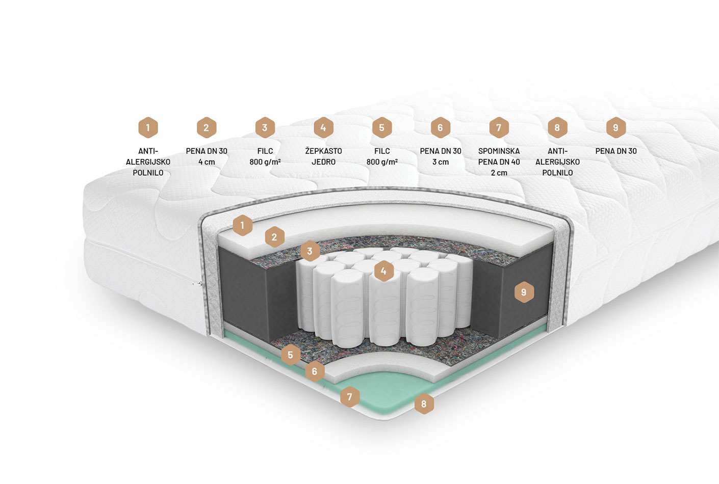 antialergijskim polnilom, preprečuje razvoj pršic - zadrga, prevleka je snemljiva in pralna na 30° C